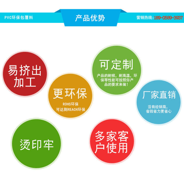 金立達(dá)新材料經(jīng)技術(shù)攻關(guān),開(kāi)發(fā)出適用于石塑型材、木塑型材、發(fā)泡型材表面包覆專用料,金立達(dá)PVC包覆料優(yōu)點(diǎn)::1、 易擠出加工。2、 表面光滑易后道燙印加工。3、 燙印加工后,牢度好不易脫落。4、 顏色可按客戶要求進(jìn)行調(diào)色定制。5、 月供500噸以上,多家客戶使用!